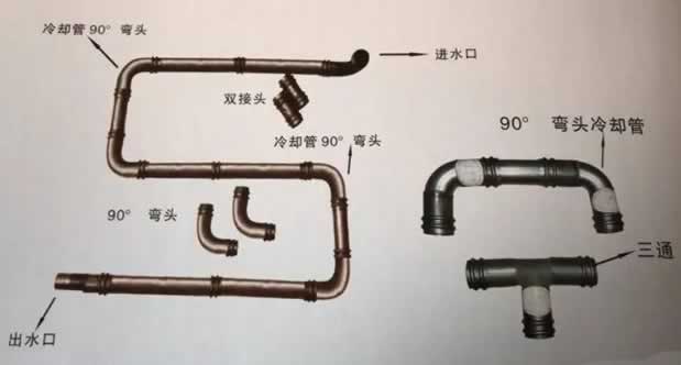 承台冷却管的组成部分,双接头,弯管或者是直接接头,声测管或者是焊管,液压钳
